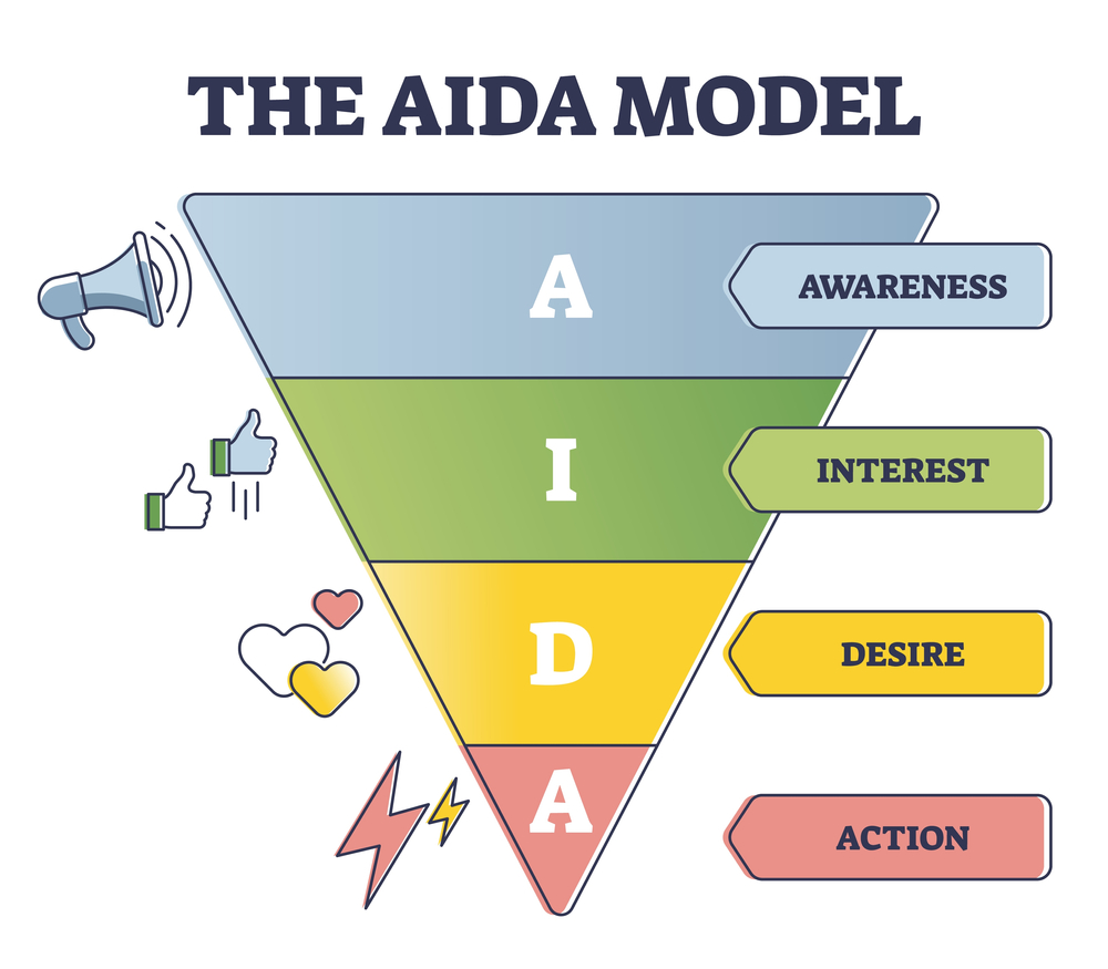 The knowledge of the customer interactions sequences is becoming vital to link the business with its target consumers. Among the oldest models still in use is the AIDA model in marketing. This is one of the oldest marketing models. AIDA model prompts the audience to attract attention, spur interest, make them want your product, and finally lead them to take the action.
